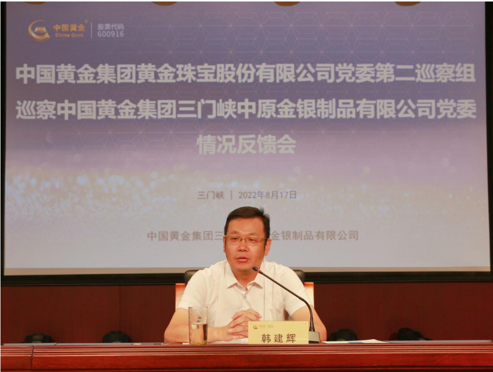 根據中金珠寶黨委巡察工作統(tǒng)一安排,8月17日,中金珠寶黨委第二巡察組(以下簡稱巡察組)巡察中國黃金集團三門峽中原金銀制品有限公司(以下簡稱三門峽公司)黨委情況反饋會召開。中金珠寶黨委委員、紀委書記、黨委巡察工作領導小組副組長韓建輝出席會議并講話。中金珠寶黨委第二巡察組組長胡金紅就巡察情況進行現場反饋,三門峽公司黨委書記、董事長陳志杰作表態(tài)發(fā)言。中金珠寶黨委巡察辦公室相關人員,三門峽公司領導班...