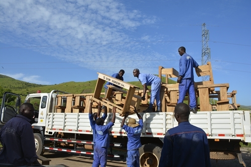 中國黃金索瑞米公司為當(dāng)?shù)貙W(xué)校捐贈桌椅。