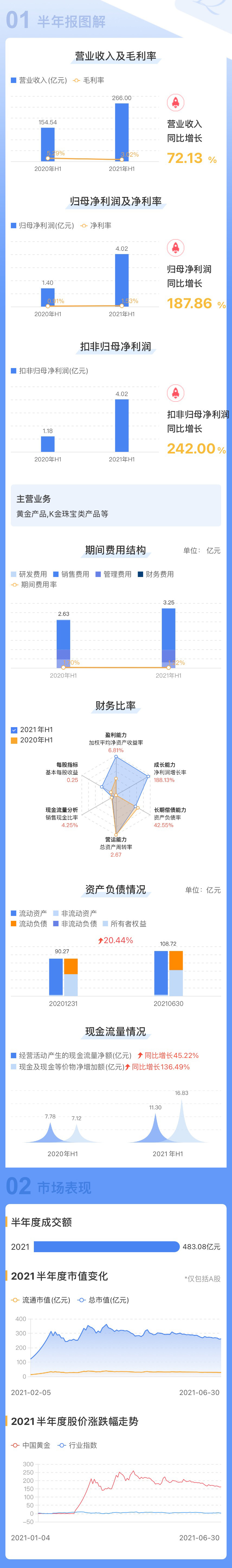 中國黃金集團(tuán)黃金珠寶股份有限公司(簡(jiǎn)稱“中國黃金”600916.SH)于今日發(fā)布2021年半年度業(yè)績(jī)公告,業(yè)績(jī)大幅增長(zhǎng)188%