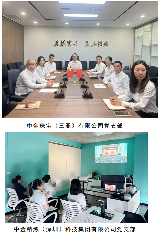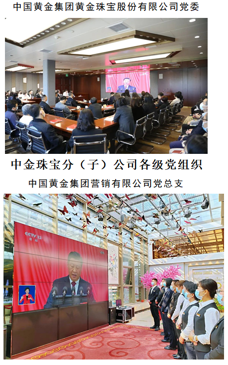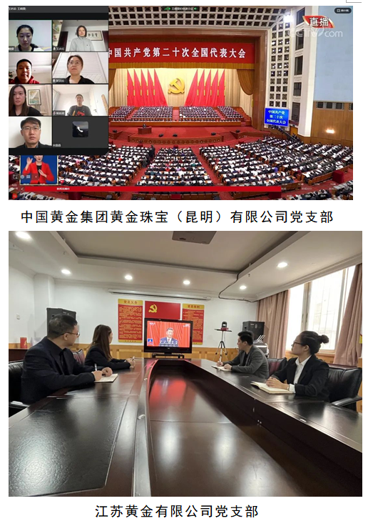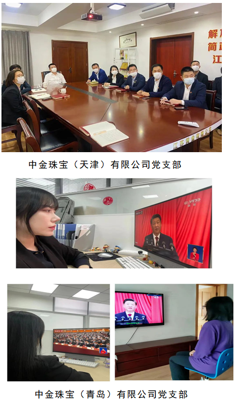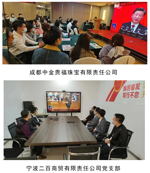 據(jù)統(tǒng)計(jì),中金珠寶黨委、分(子)公司基層黨組織以及中國(guó)黃金黨群共建單位共計(jì)25個(gè)基層黨組織、400余名黨員收聽收看了此次開幕會(huì)直播盛況,基本實(shí)現(xiàn)了全板塊、全系統(tǒng)黨組織、黨員全覆蓋。黨組織主要負(fù)責(zé)同志帶頭參加,第一時(shí)間了解掌握會(huì)議主要精神,團(tuán)結(jié)帶領(lǐng)廣大黨員干部迅速把思想統(tǒng)一到黨的二十大精神上來,把行動(dòng)統(tǒng)一到黨中央的決策部署上來,把力量凝聚到黨的二十大確定的各項(xiàng)任務(wù)上來,踔厲奮發(fā)、勇毅前行,奮力譜寫中金珠寶新時(shí)代新征程高質(zhì)量發(fā)展的新篇章。