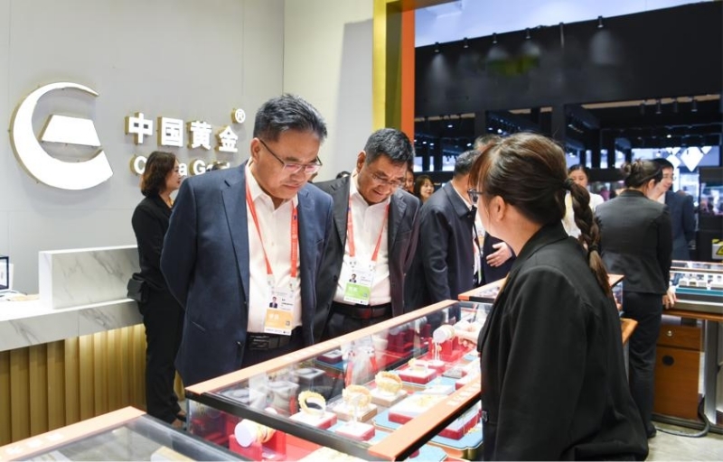 開幕式結(jié)束后,周洲一行來到中金珠寶展區(qū),深入了解黃金珠寶產(chǎn)品工藝細(xì)節(jié)及設(shè)計理念,對中金珠寶在產(chǎn)品研發(fā)設(shè)計方面取得的成績給予肯定。他表示,自主研發(fā)設(shè)計能力是企業(yè)核心競爭力的重要組成部分,中金珠寶要加大研發(fā)設(shè)計工作力度,不斷推陳出新,打造更多引領(lǐng)時代潮流的黃金珠寶產(chǎn)品,更好地滿足群眾多樣化消費需求,更好地滿足人民高品質(zhì)生活。要密切關(guān)注國際行業(yè)發(fā)展趨勢,學(xué)習(xí)借鑒國際先進(jìn)設(shè)計理念和工藝技術(shù),加快提升品牌國際化水平。
