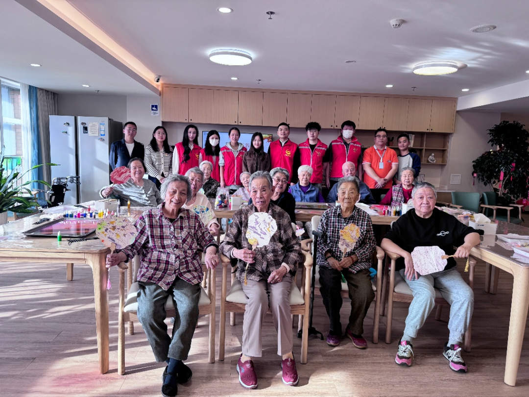 活動現(xiàn)場,團員們精心組織了一系列豐富多彩的手工活動。在非遺水拓絲巾制作環(huán)節(jié),團員們運用特制顏料和紙張,創(chuàng)作出了一幅幅色彩斑斕、獨具匠心的水拓絲巾。這些絲巾不僅展現(xiàn)了傳統(tǒng)文化的獨特魅力,更為長者們的生活增添了無限光彩。此外,團員們還陪同長者們一同參與了漆扇制作,這一中國傳統(tǒng)工藝品以其精湛的工藝和精美的外觀贏得了長者們的一致贊譽。在制作過程中,團員們不僅學習到了漆扇的制作技藝,更深刻體會到了傳統(tǒng)工藝的文化內(nèi)涵與價值。