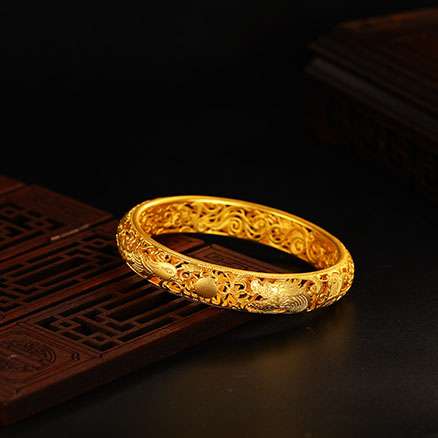 承福金系列 百福轉(zhuǎn)動(dòng)花絲手鐲